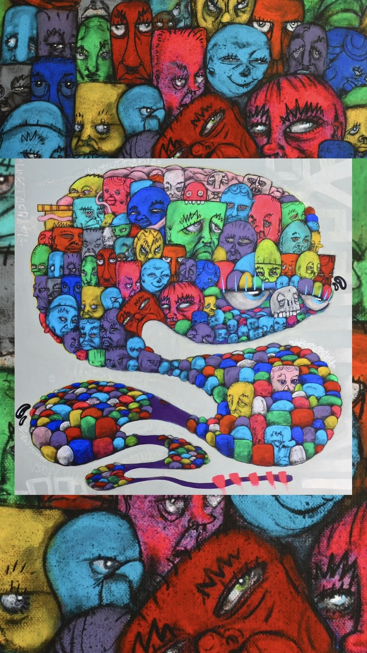 I started drawing my creatures as a teenager. These creatures are little beings that helped me express how I felt when I didn’t always have the words. Over time, those early sketches evolved into the distinct visual language that now drives my practice. My work blends street art influences, popular culture, and raw personal experience, forming a universe of characters that reflect identity, emotion, and the strange beauty in the everyday.